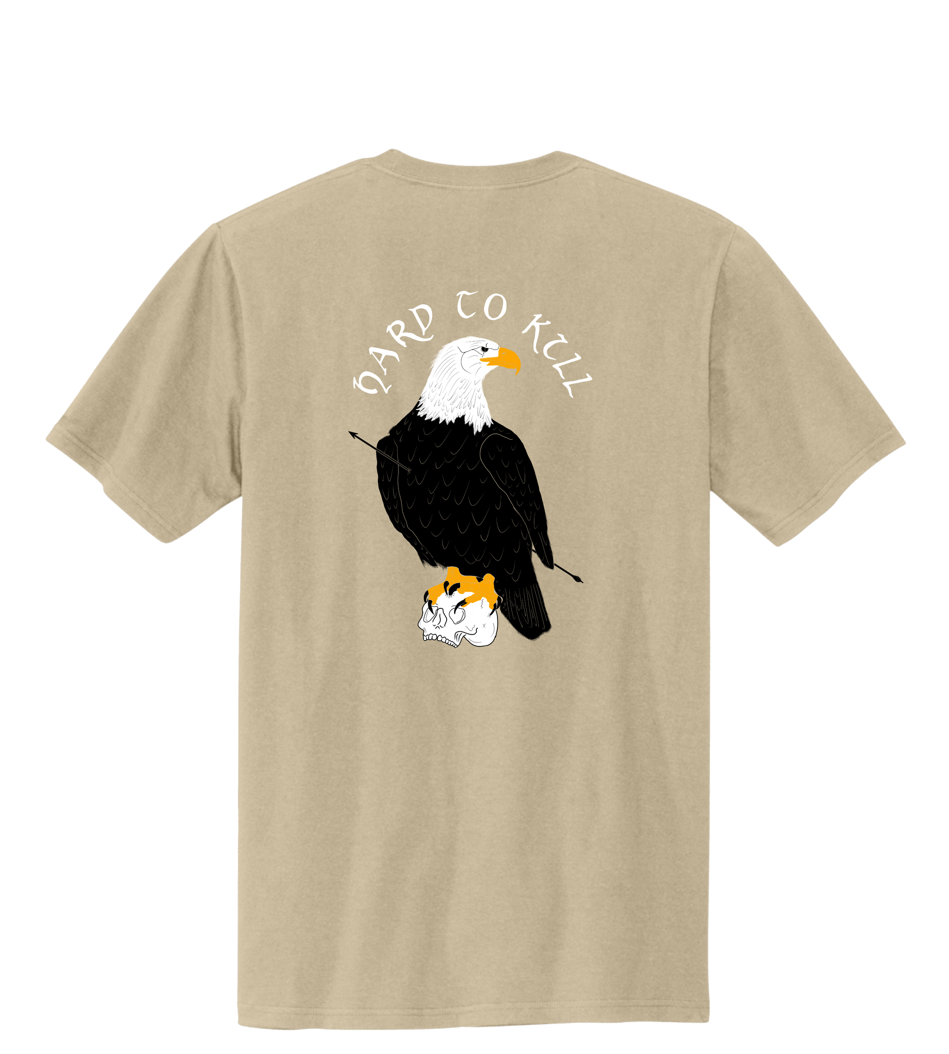Unleash your bold side with the Skálli-Örnin T-Shirt, a striking 6oz tee crafted in the USA. Featuring a powerful eagle perched atop a skull, pierced by an arrow, paired with the defiant "HARD TO KILL". Made from premium cotton, it offers lasting comfort and a classic fit. Perfect for those who embrace strength and individuality, this 100% USA-made tee combines quality craftsmanship with a bold, eye-catching graphic.